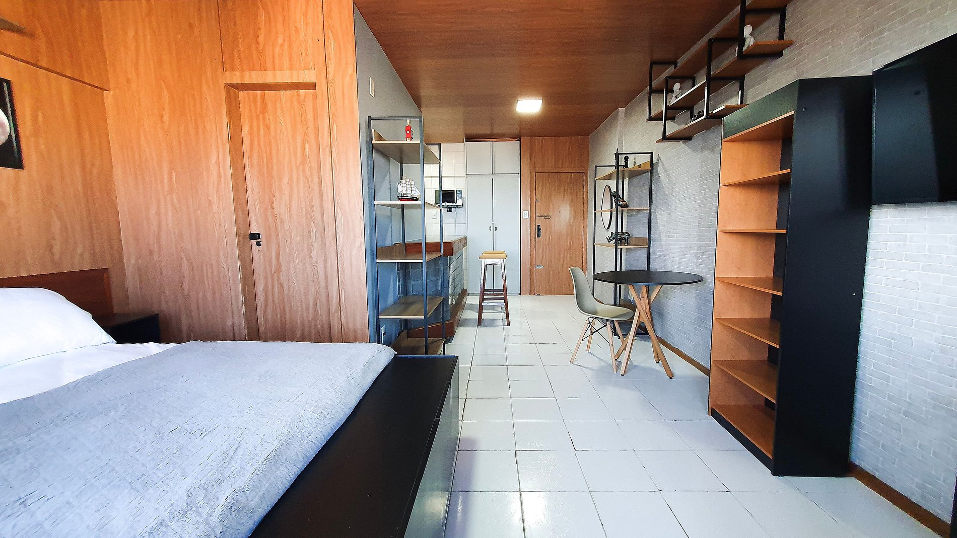 Aproveite a comodidade de um apart hotel, com limpeza diária, garagem coberta e recepção 24 horas.