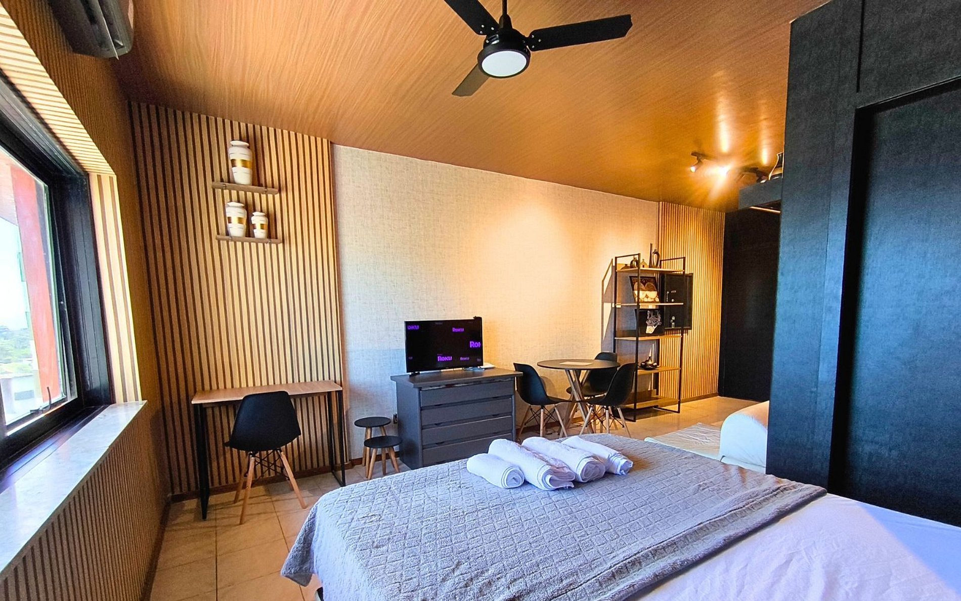 Aproveite a comodidade de um apart hotel, com limpeza diária, garagem coberta e recepção 24 horas.