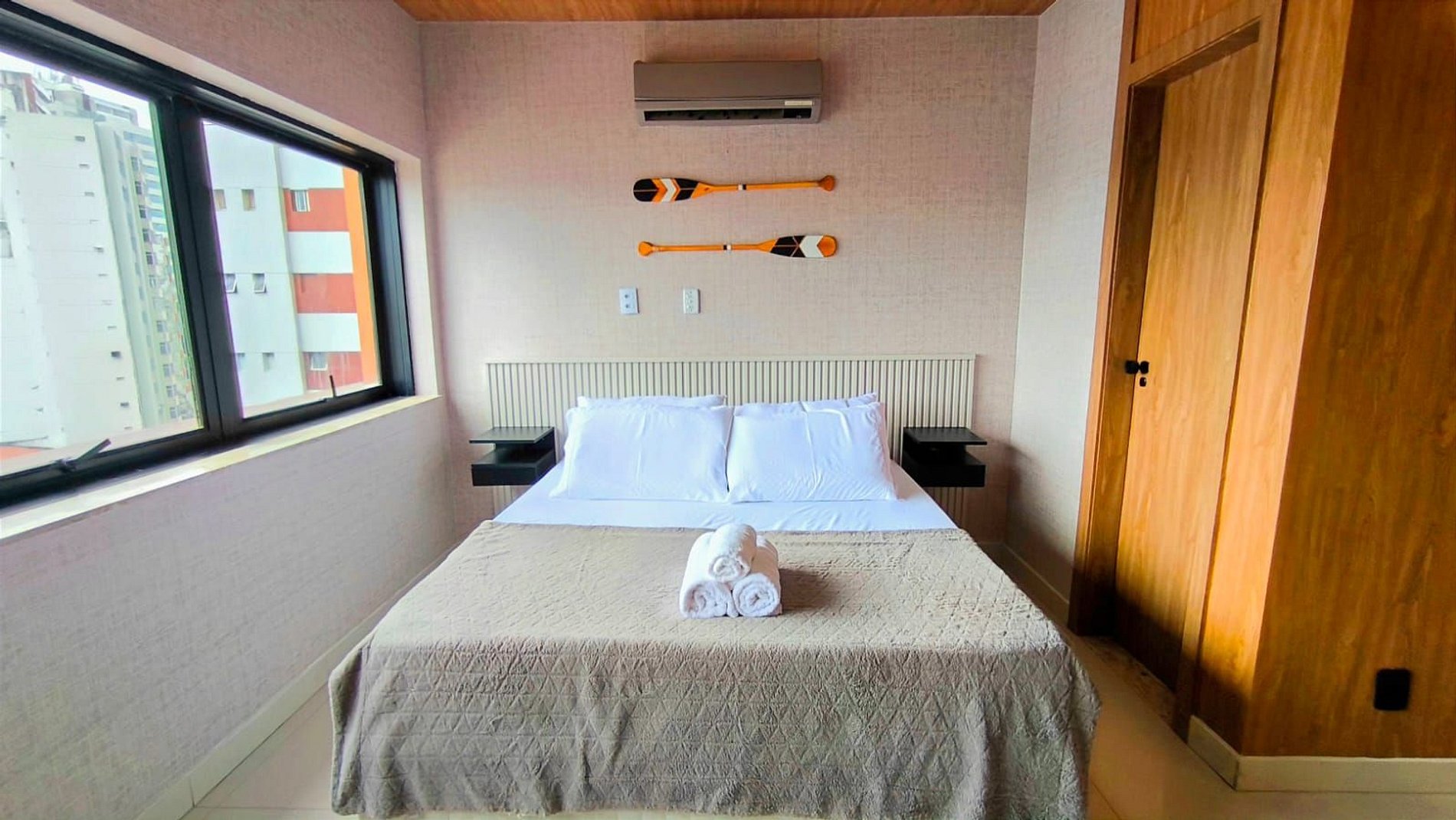 Aproveite a comodidade de um apart hotel, com limpeza diária, garagem coberta e recepção 24 horas.