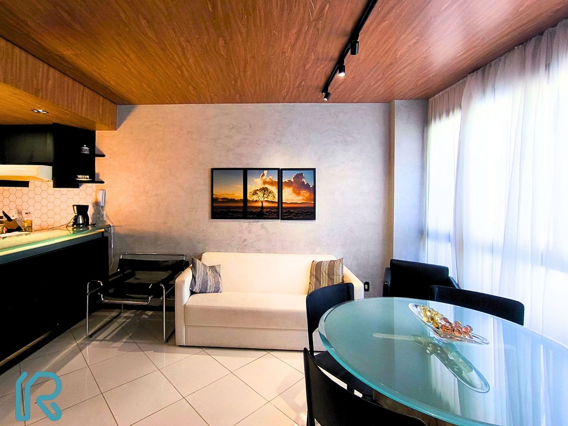 Área de estar com sofá/cadeira