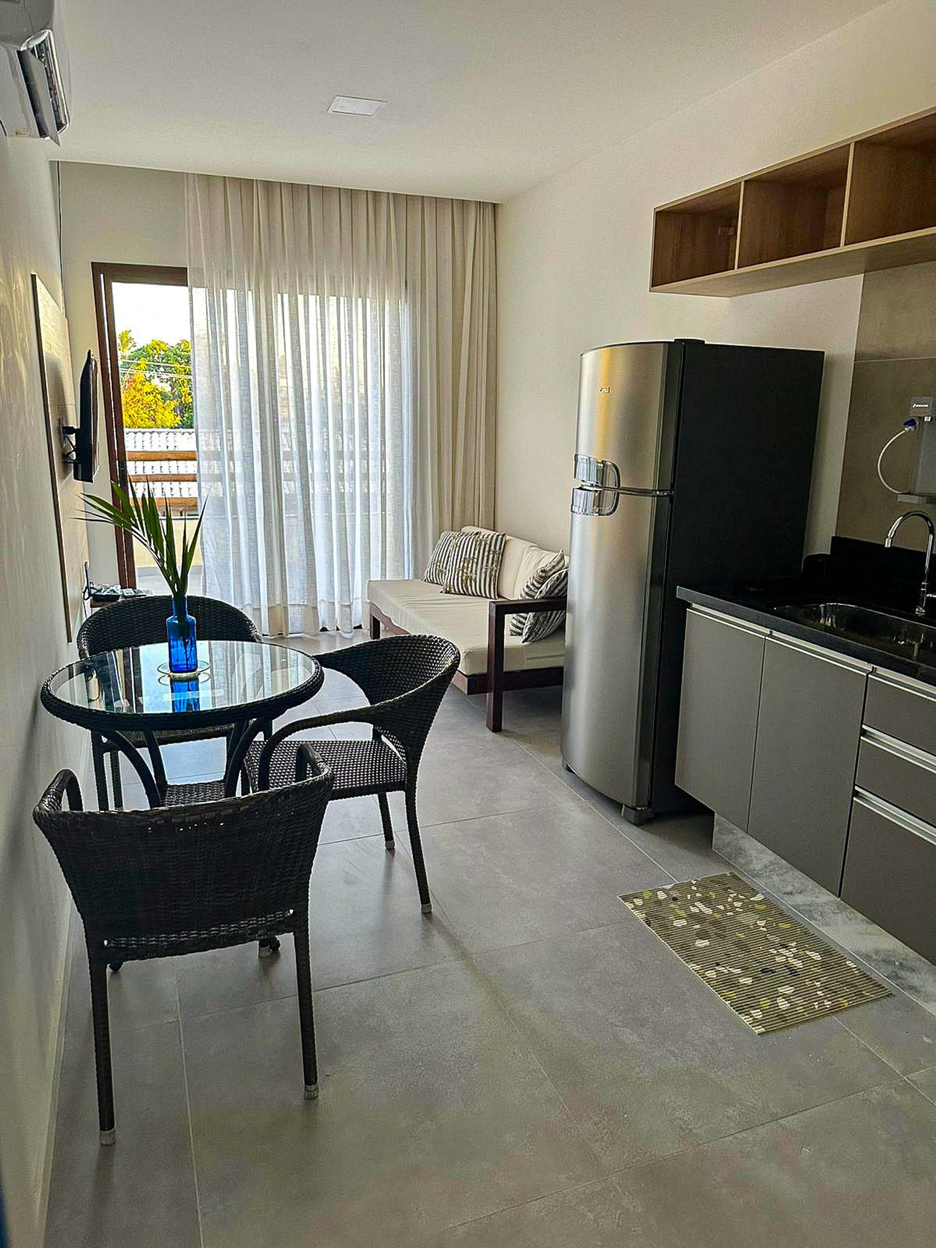 Lindo Apartamento Quarto e Sala recém-inaugurado em um village encantador na vila Praia do Forte, a apenas 3 minutos da Igreja e da praia. Moderno e aconchegante, foi projetado para máximo conforto.